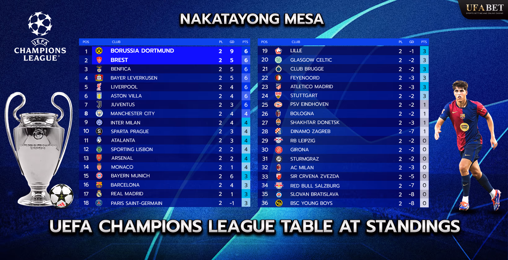UFABETSoccerStanding ng UEFA Champions League: Talahanayan ng UEFA Champions League 2025/2026