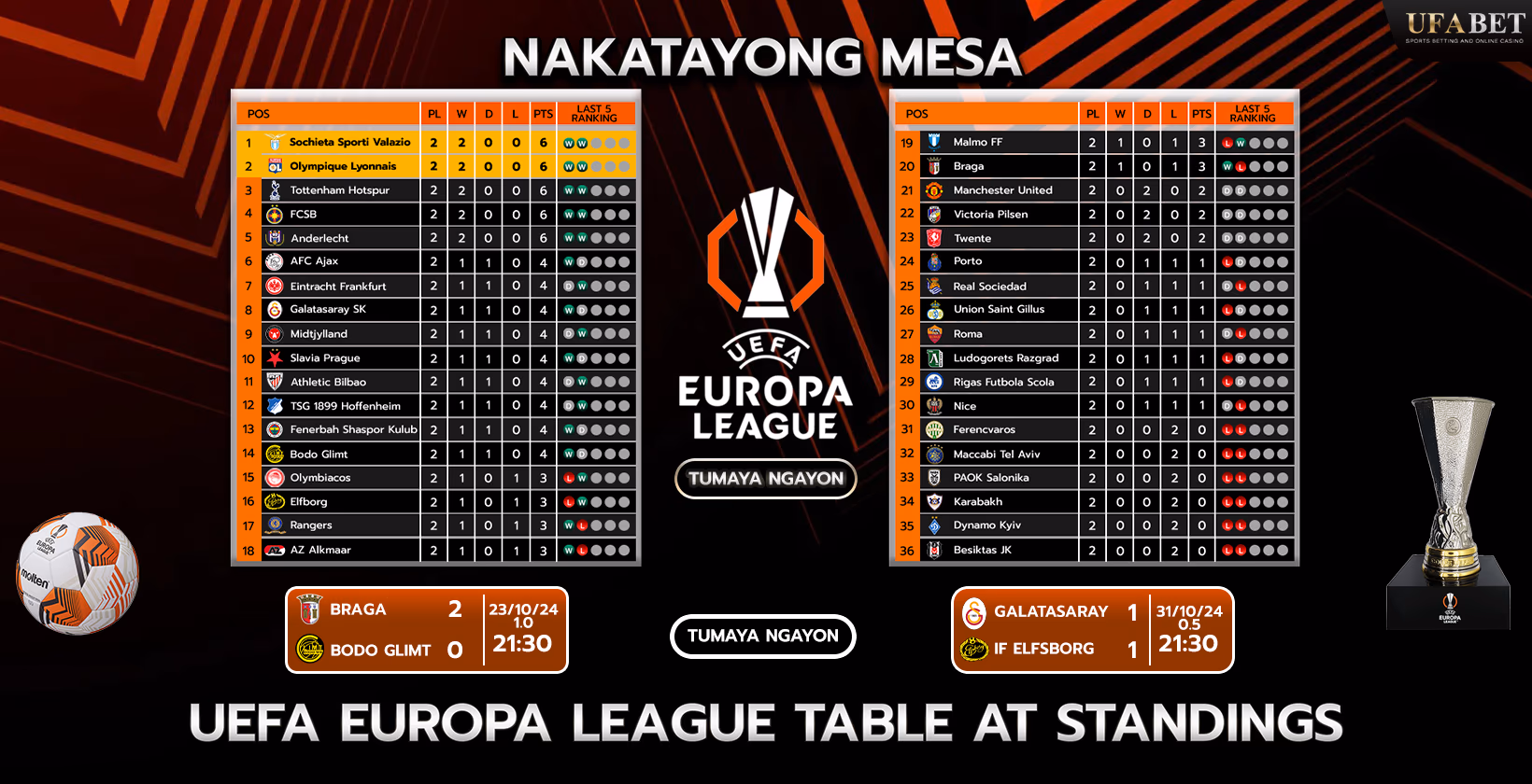 UFABETSoccerStanding ng UEFA Europa League: Talahanayan ng UEFA Europa League 2025/2026